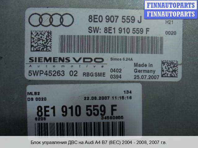 Совершая покупку блока управления двигателем (ЭБУ) на Audi A4 (8W, B9), (8K, B8), (8E/8H, B7), (8E/8H, B6), (8D, B5) (Ауди А4 Б9, Б8, Б7, Б6, Б5) в нашем магазине, Вы экономите ваше время и деньги, так как выбираете качественную запчасть по низкой цене. Мы даём гарантию на весь наш ассортимент.