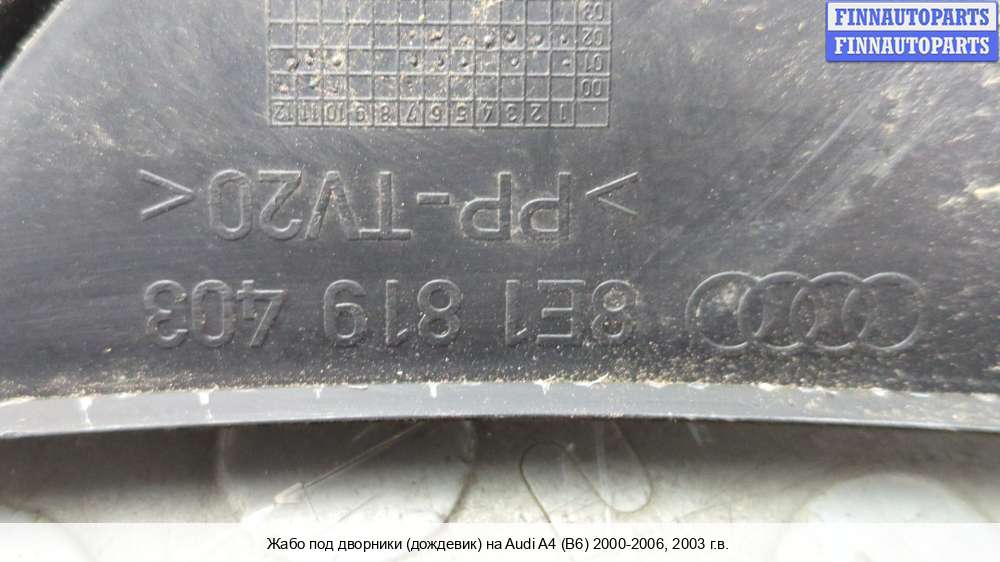 В компании FINNAUTOPARTS можно купить Жабо, купить Накладка под лобовым стеклом, купить Дождевик на а/м Audi A4 (Ауди А4).