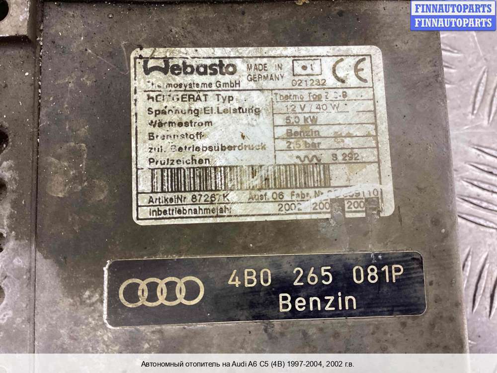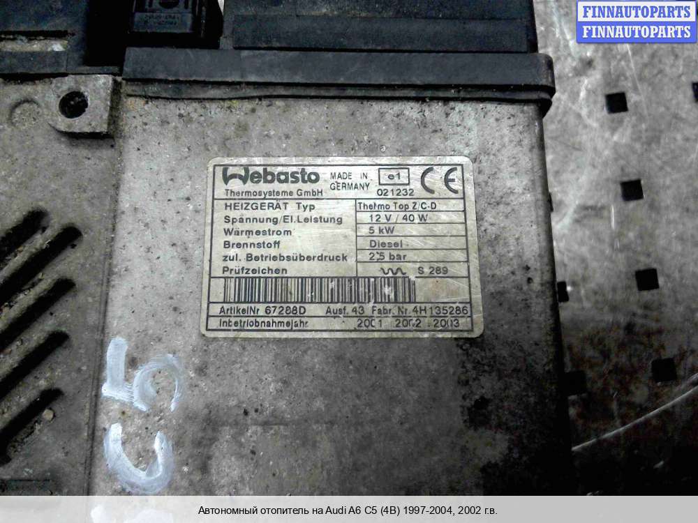 В компании FINNAUTOPARTS можно купить Автономный отопитель (вебасто), купить Webasto на а/м Audi A6 (Ауди А6).