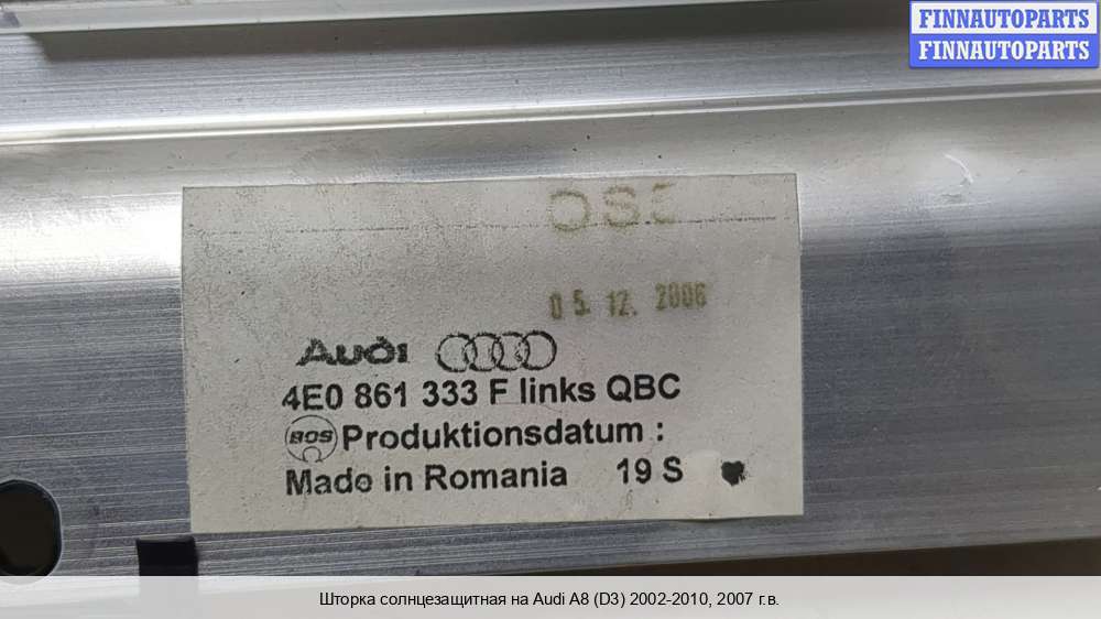 | Калининград | 2008 | 4E0867303, 2008, 5.2л, Бензин, FSI, BSM, 4E0867303MQYD, Седан, серебристый, зад., левая, Лев | Зад, + шторка + крепеж шторки + кнопка стеклоподъёмника, мелкие вмятины, царапины,, мелкие вмятины, царапины | |||