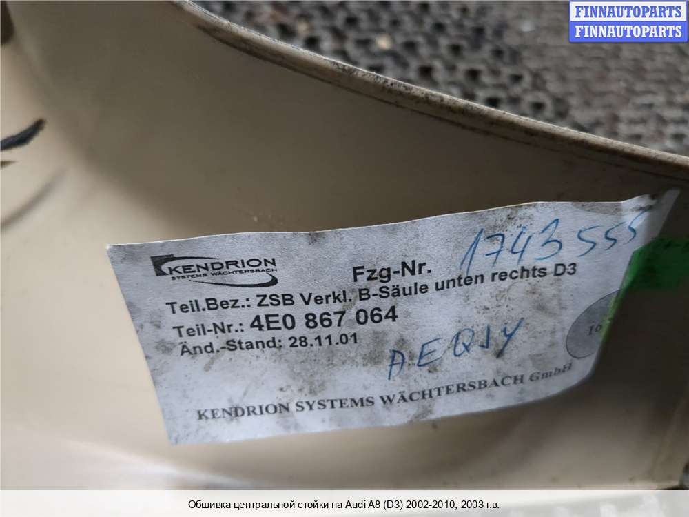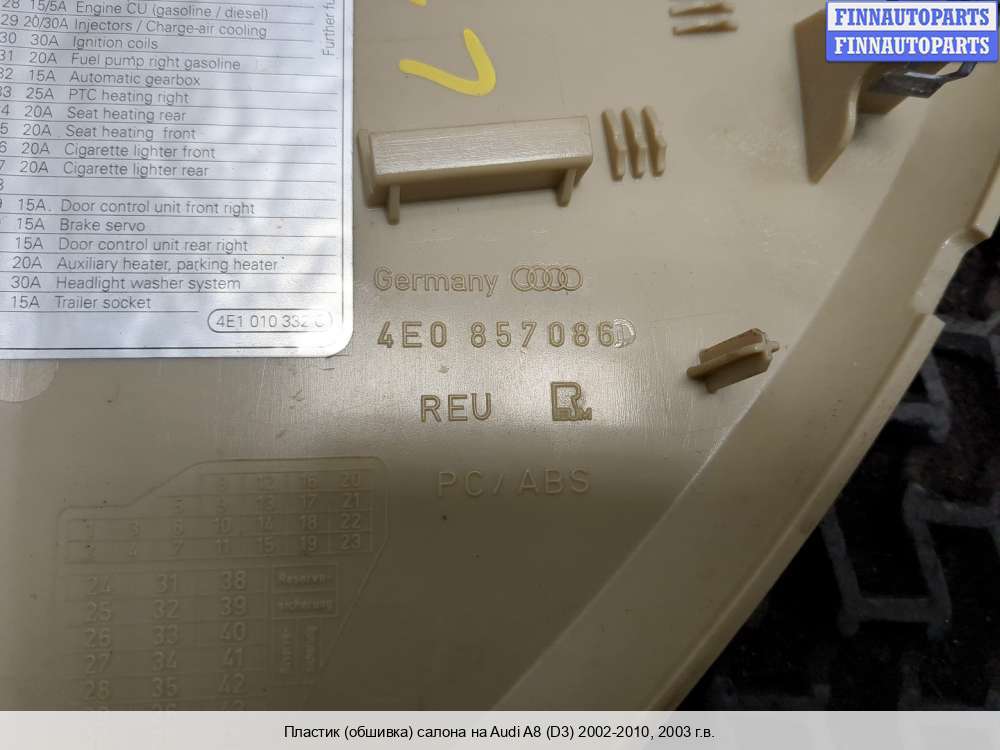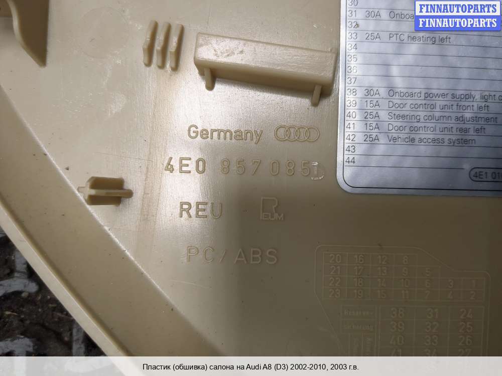В компании FINNAUTOPARTS можно купить Обшивка салона, купить Обшивка боковой двери, купить Карта двери, купить Потолок на а/м Audi A8 (Ауди А8).