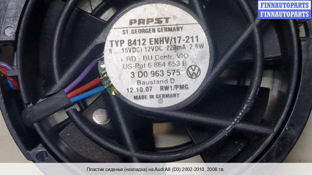 2008; Бензин; 4.2; BVJ, FSI; Седан; Автомат; черный; 2008, 4.2л, Бензин, FSI, BVJ, 3D0963345, Седан, черный, - | - , ВЕНТИЛЯТОР СИДЕНЬЯ,