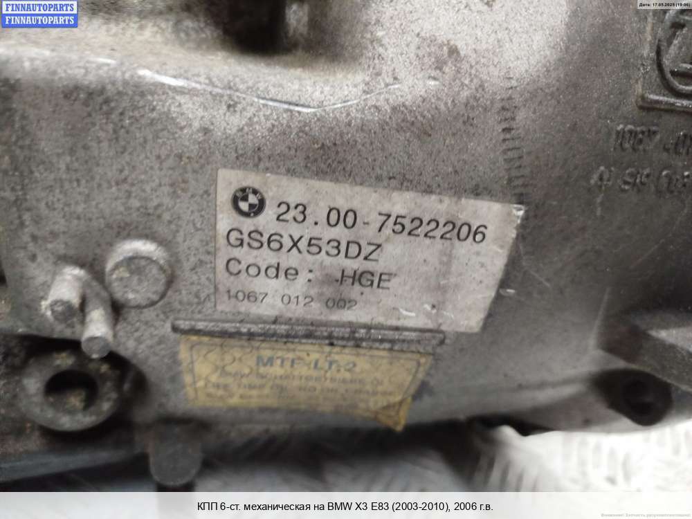 | КПП 6-ст. механическая | BMW X3 E83 (2003-2010) |