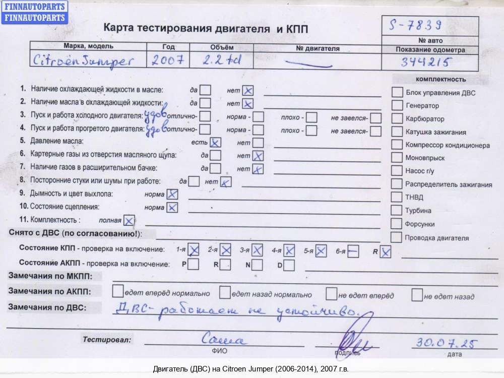 2005; Дизель; 2.2; 4HY, HDI; Микроавтобус; Механика; белый; 2005, 2.2л, Дизель, HDI, 4HY, Б/Н, 0135JH, Микроавтобус, белый, Б/Н | - | Г | К | С | Н | КК | ТУ, прокручивается, состояние ГРМ - нормально, поддон - нормально, клапанная крышка - нормально, эмульсия - нет,