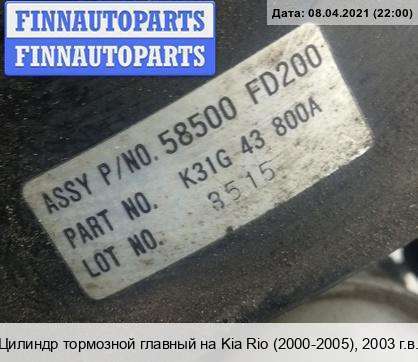 В компании FINNAUTOPARTS можно купить Главный тормозной цилиндр (ГТЦ), купить Цилиндр тормозной главный на а/м Kia Rio (Киа Рио).