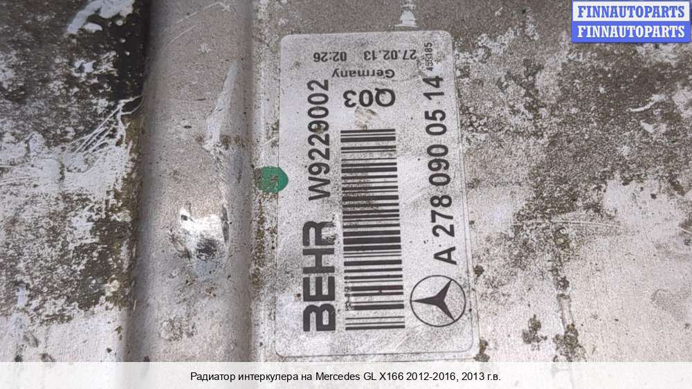 В компании FINNAUTOPARTS можно купить Интеркулер, купить Радиатор интеркулера на а/м Mercedes-Benz GL-class (Мерседес Бенц ГЛ).