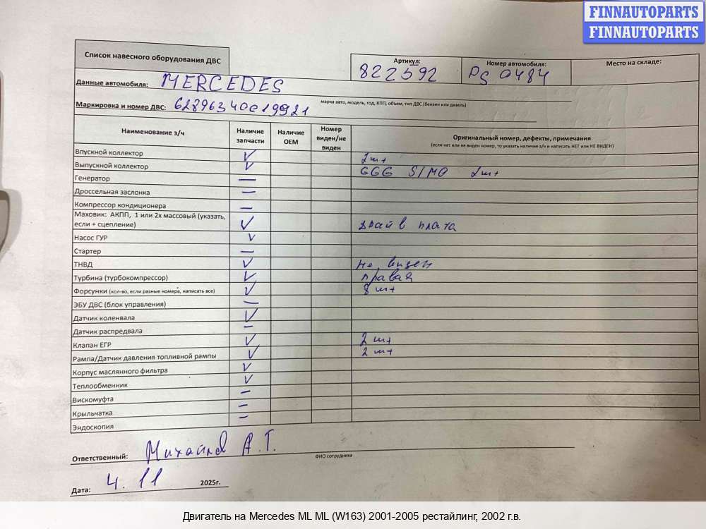 2011; Дизель; 3.0; OM 642.820, CDI; Джип (5 дв.); Автомат; серебристый; 2011, 3л, Дизель, CDI, OM 642.820, 64282041089165, A6420103243, Джип (5-дверный), серебристый, Фото не актуально, с запчасти отделены: Коллектор выпускной, Патрубок интеркулера, Генератор, Клапан рециркуляции газов (EGR), Турбина, ТНВД, Компрессор кондиционера, Заслонка дроссельная, Форсунка топливная, Форсунка топливная, Форсунка топливная, Форсунка топливная, Форсунка топливная, Форсунка топливная, Рампа (рейка) топливная, 64282041089165 | - , прокручивается, состояние ГРМ - нормально, поддон - нормально, клапанная крышка - нормально, эмульсия - нет, дефект поддона (вмятина),, дефект поддона (вмятина)