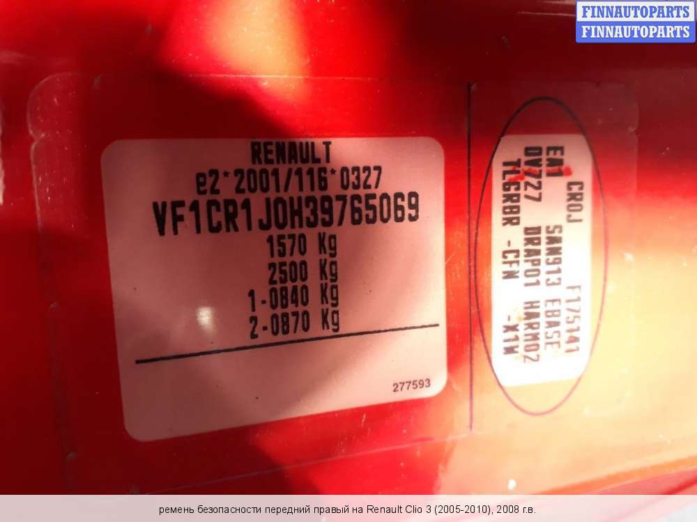 Купить б/у ремень безопасности для Renault Clio III, II, Symbol, I