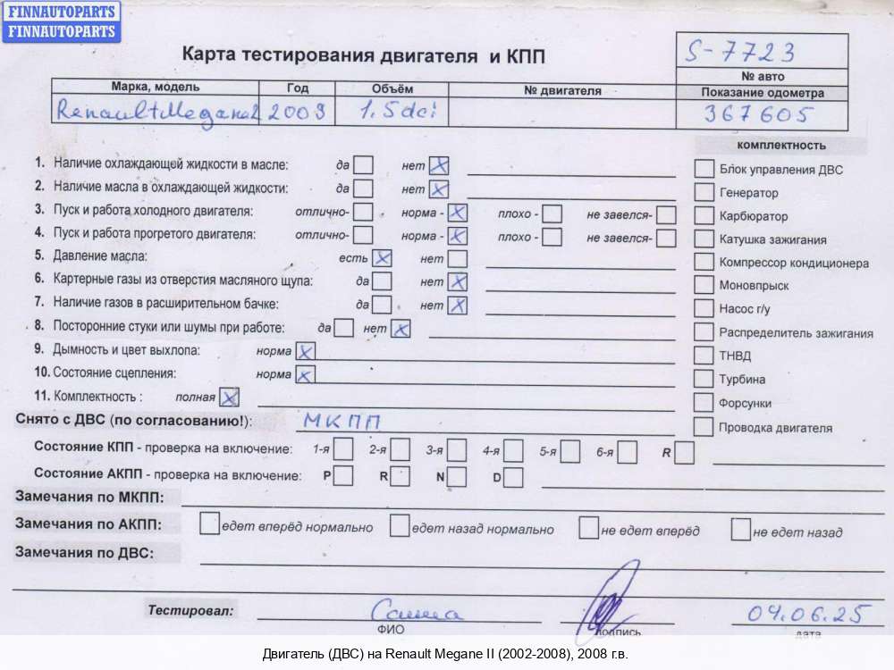 2010; Дизель; 1.5; K9K 830, DCI; Купе; Механика; черный; 2010, 1.5л, Дизель, DCI, K9K 830, бн, Купе, черный, бн | - | Г | К | С | КК | ТУ, прокручивается, состояние ГРМ - нормально, поддон - нормально, клапанная крышка - нормально, эмульсия - нет, 1 массовый,