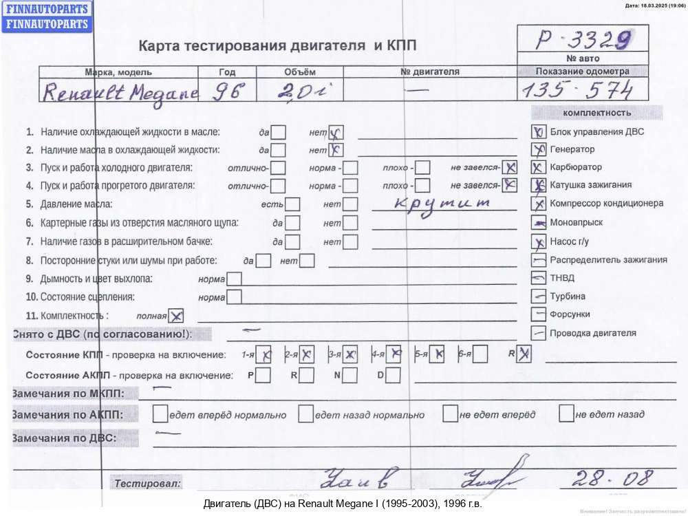 2011; Дизель; 1.9; F9Q 870, DCI; Купе; Механика; белый; 2011, 1.9л, Дизель, DCI, F9Q 870, F9QN870C089805, Купе, белый, F9QN870C089805 | - | Г | К | С | КК | ТУ, прокручивается, состояние ГРМ - нормально, поддон - нормально, клапанная крышка - нормально, эмульсия - нет,