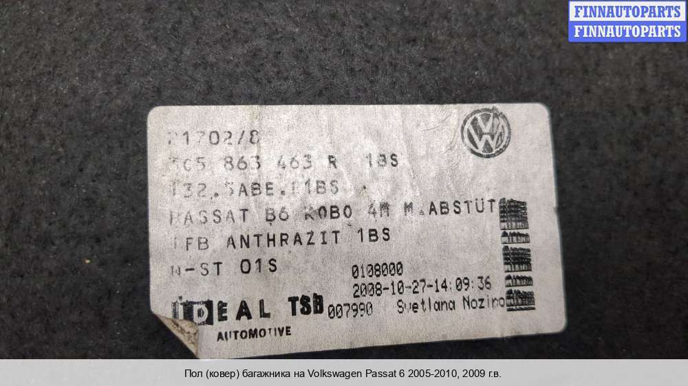 Пол (ковер) багажника | Volkswagen Passat 6 2005-2010 |