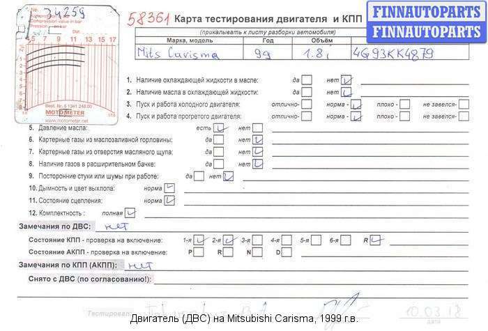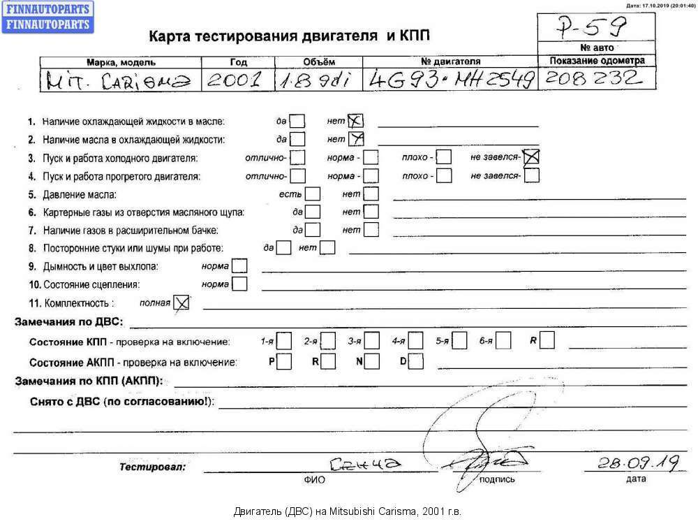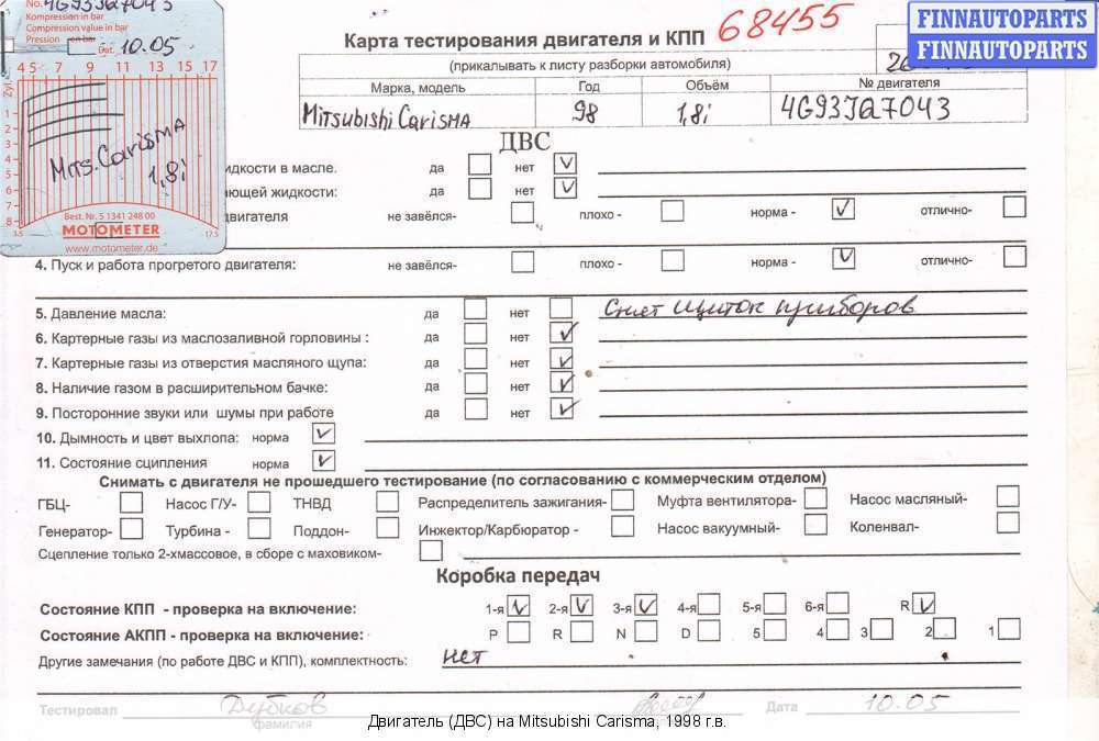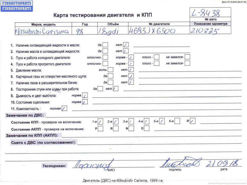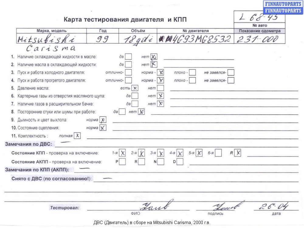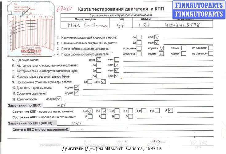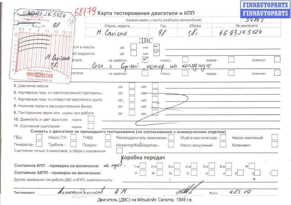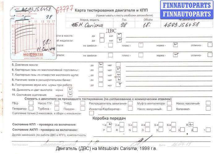 Владикавказ | 1998 | ТНВД md 351017 Двигатель с форсунками и ТНВД | 4G93 (GDI) | ||
