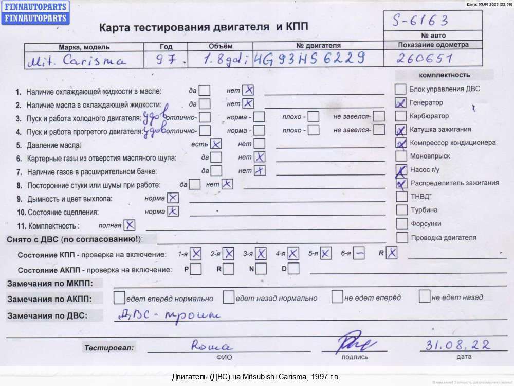 Казань | 1998 | 2 вала, левый руль, мкпп, 4g93hs7183, мотор GDI, хетчбек, 5 дв | 4G93 (GDI) | ||