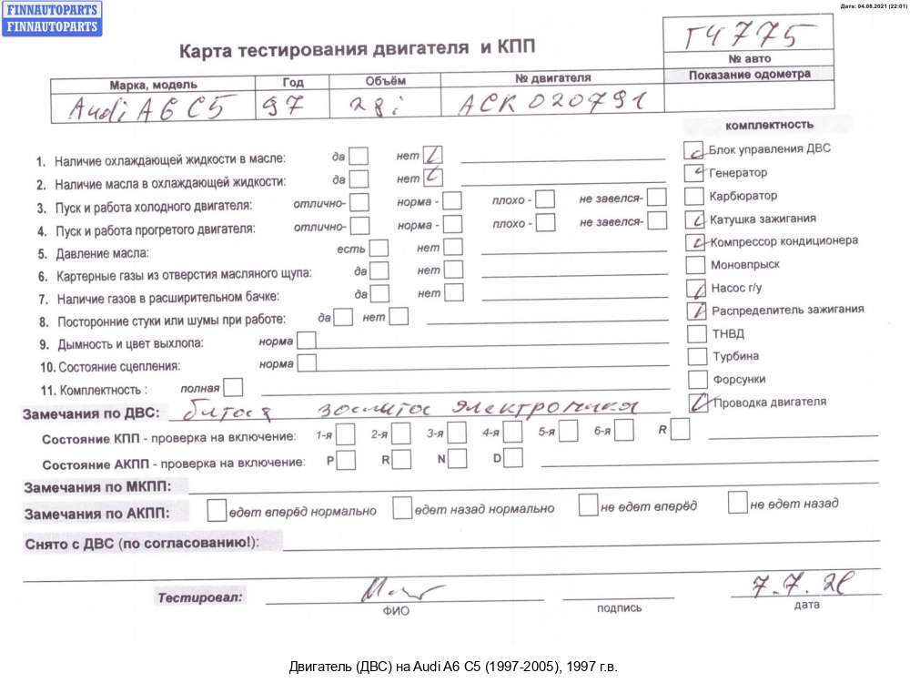 Казань | 1998 | ауди а6 с5 кватро АКПП 2.8 ALG. Желательно двигатель без навесного. Спасибо | ALG | ||