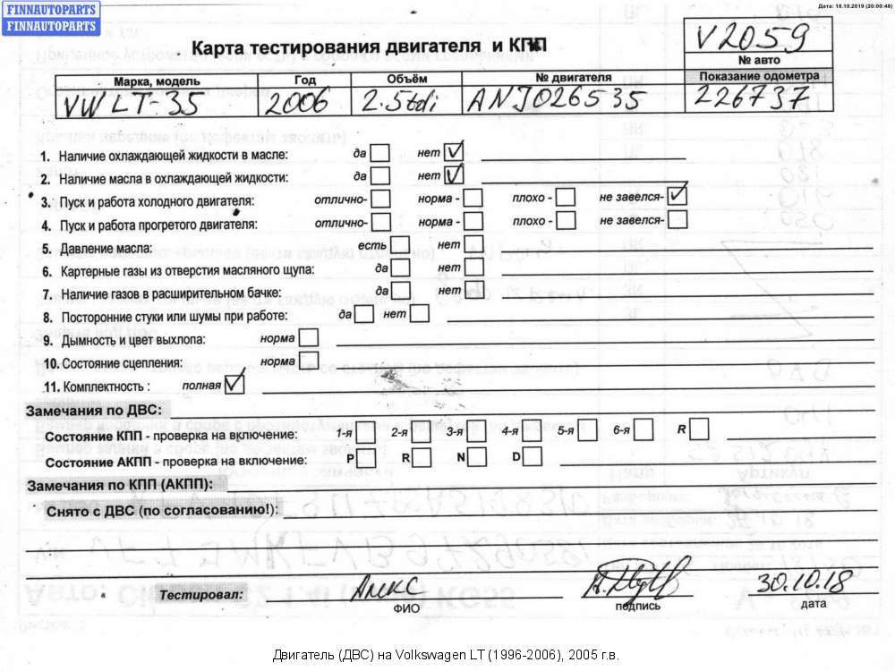 Двигатель ANJ, AVR Volkswagen (Фольксваген) 2.5 л