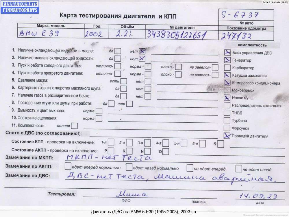Наб. Челны | 2002 | предыдущую заявку сайт не находит | M54 B22 (226S1) | ||