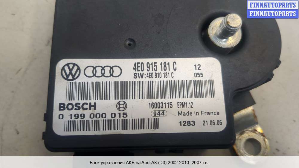 | Примечание: | 2007, 4.2л, Бензин, FSI, BVJ, 4E0915181C, Седан, черный, |