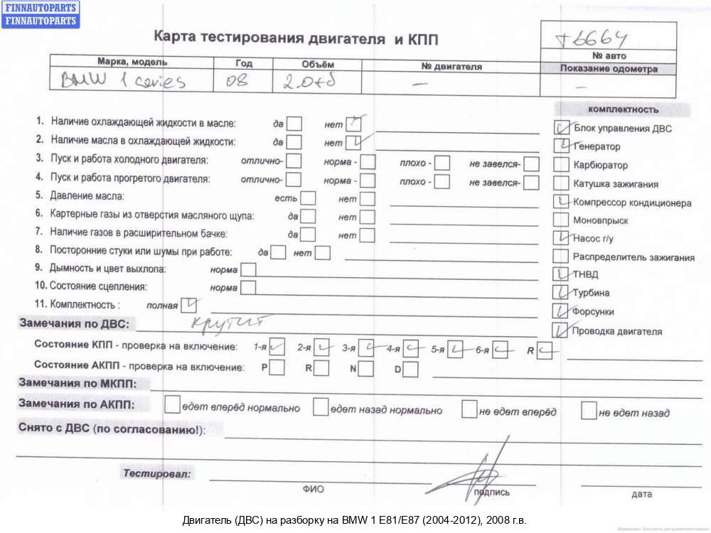 Примечание: | Б/Н (цена без навесного) НА РАЗБОР КЛИНИТ .СМ ФОТО, Внимание! Запчасть разукомплектована. Сняты запчасти: Проводка двигателя, Тепловой экран глушителя, Патрубок, Подушка крепления двигателя, Реле накала, Патрубок, Форсунка топливная, Патрубок радиатора, Датчик давления выхлопных газов, Форсунка топливная, Датчик давления топлива, Генератор, Заслонка дроссельная, Компрессор кондиционера, Форсунка топливная, Клапан управления турбиной (актуатор), Коллектор впускной, Клапан управления турбиной (актуатор), Форсунка топливная, Датчик давления наддува, Патрубок турбины, Проводка двигателя, Блок управления двигателем (ДВС), Проводка двигателя, Кронштейн крепления, Охладитель отработанных газов, Кронштейн крепления, Проводка двигателя, Щуп двигателя масляный , Датчик давления топлива, Кронштейн крепления, Разъем (фишка) проводки, Сцепление (комплект), Турбина, Регулятор давления топлива, Трубка ТНВД, Трубка ТНВД, Трубка ТНВД, Трубка ТНВД, Кронштейн двигателя опорный, Датчик положения распредвала, Кронштейн двигателя опорный |