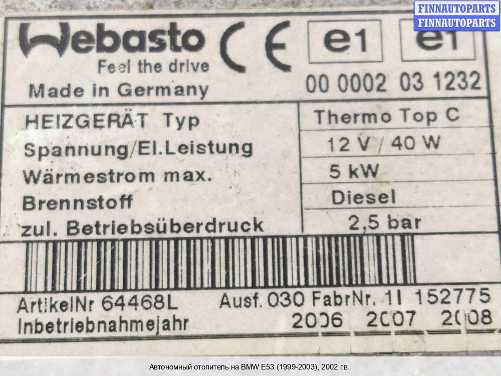 Купить автономный отопителя (вебасто) BM3501078 на BMW X5 (E53)