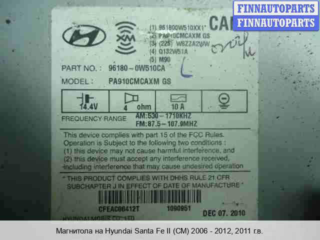 Купить магнитолу HN372052 на Hyundai Santa Fe II (CM)