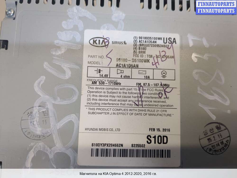 Купить магнитолу KA546937 на Kia Optima IV (JF)