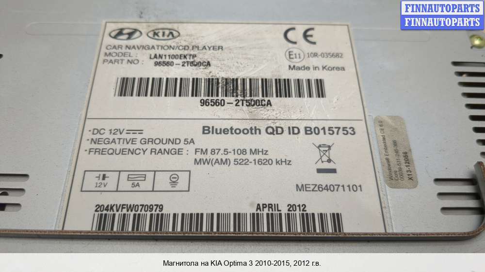 Купить магнитолу KA571887 на Kia Optima III (TF)