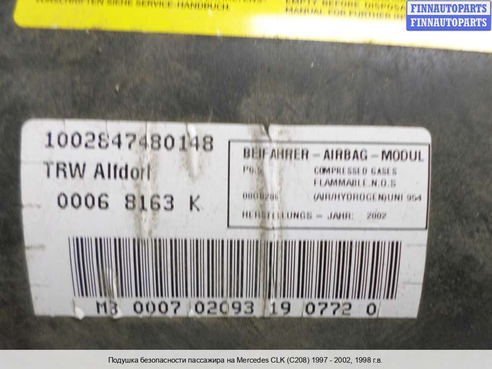 Купить подушку безопасности пассажира (Air Bag) MB1052960 на Mercedes-Benz CLK (W208)