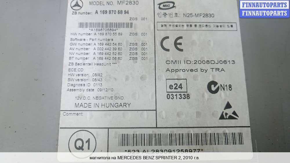 Купить магнитолу MB1253846 на Mercedes-Benz Sprinter (906)