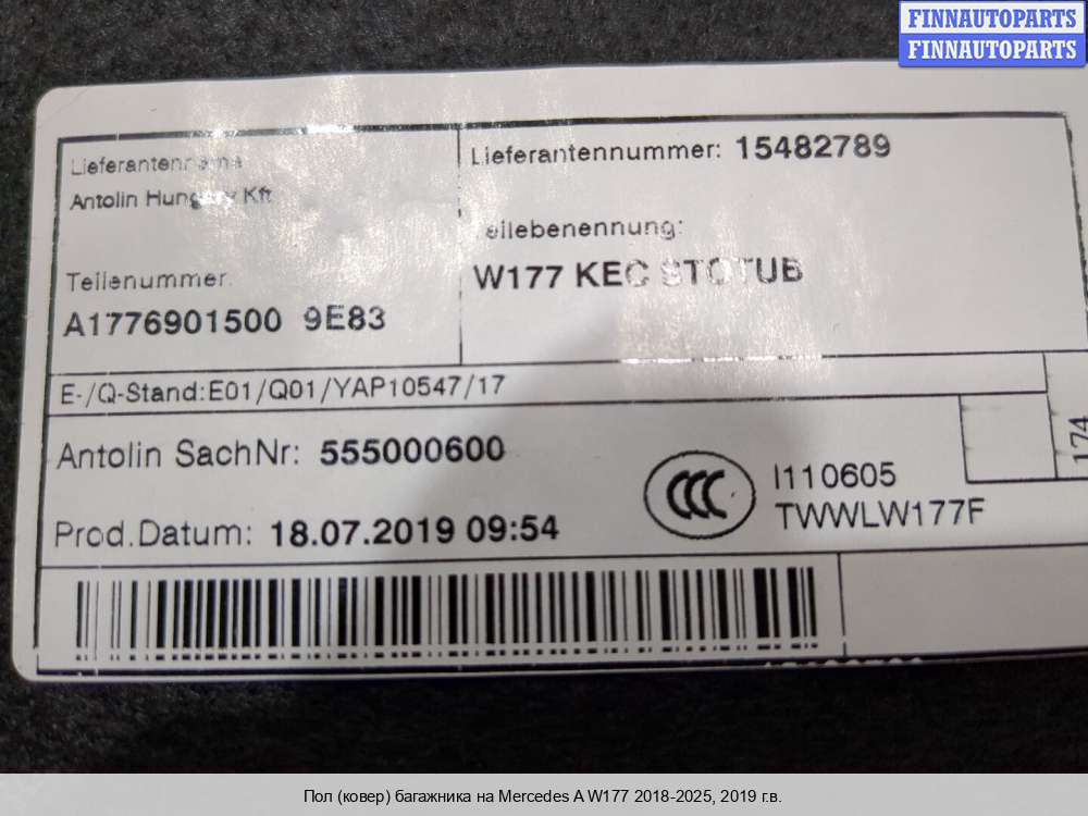 Купить ковер салона и багажника MB1537288 на Mercedes-Benz A (W177)