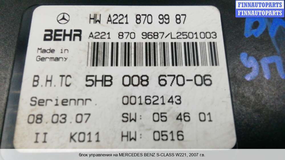 | Автомобиль: | MERCEDES BENZ S-CLASS W221 |
