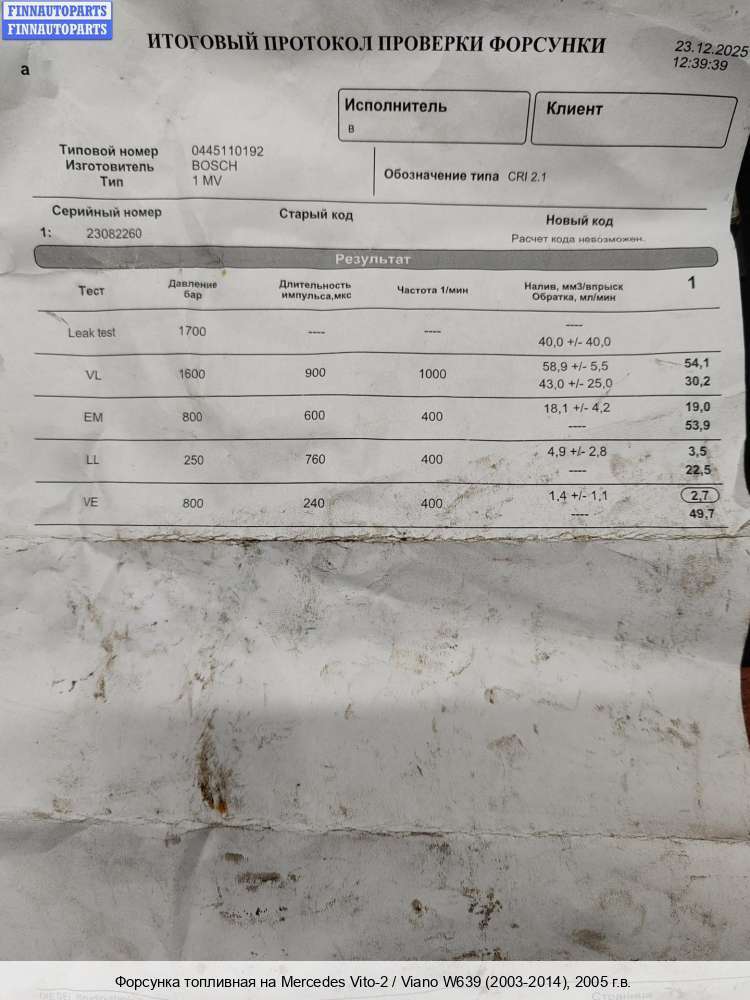 Купить топливную форсунку MB1631749 на Mercedes-Benz Vito (W639)