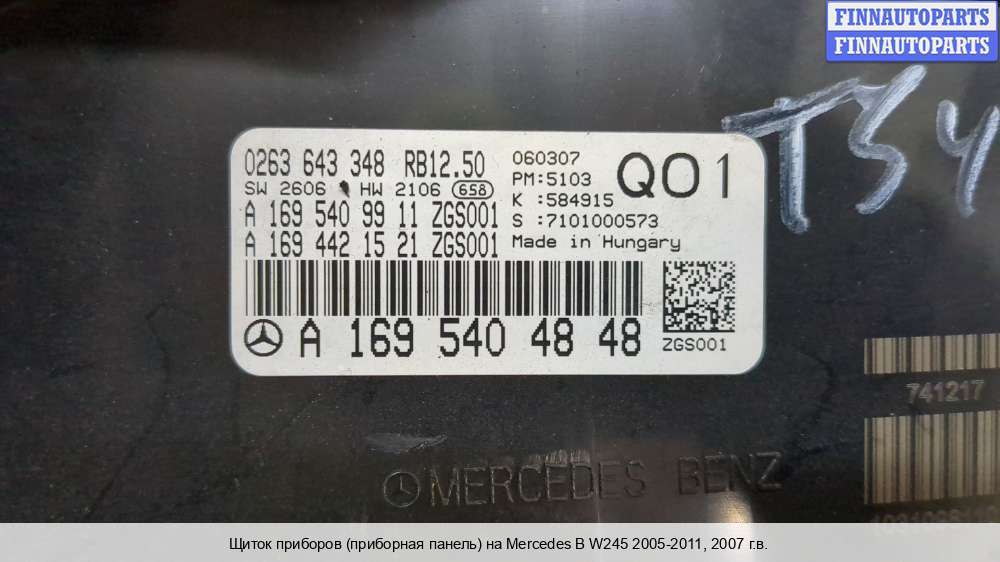 Купить приборную панель (щиток приборов) MB1644994 на Mercedes-Benz B (W245)