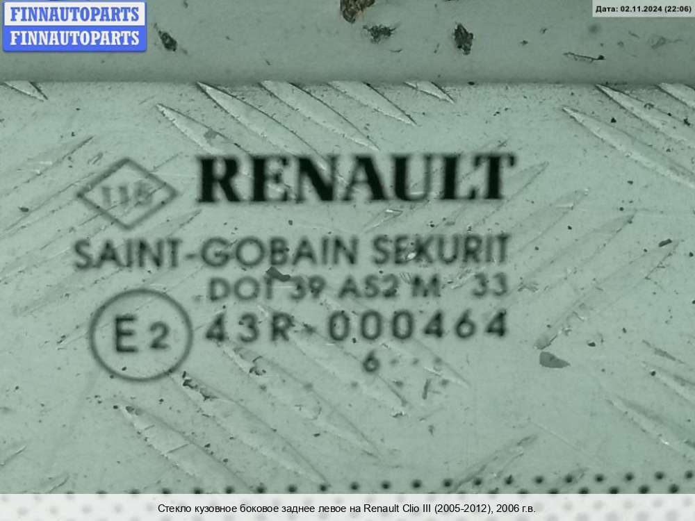 Купить стекло кузовное боковое RN1167727 на Renault Clio III