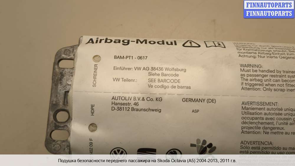 Купить подушку безопасности пассажира (Air Bag) SK502692 на Skoda Octavia (1Z, A5)