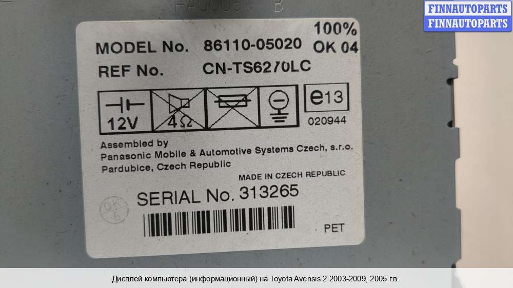 Купить дисплей бортового компьютера TT917333 на Toyota Avensis II (T250)