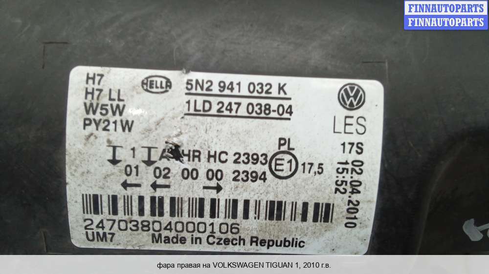 Купить фару переднюю VG2601231 на Volkswagen Tiguan I (5N)